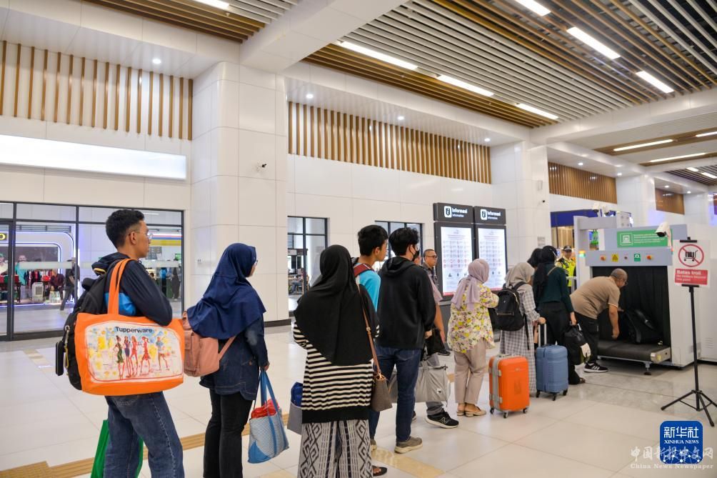 3月3日,在印度尼西亚雅加达哈利姆站,乘客排队接受安检准备进入候车大厅。 新华社记者 徐钦 摄