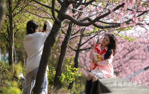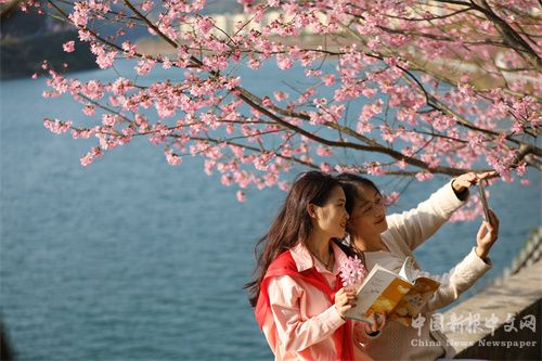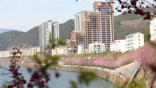 阳春三月,樱花盛开。锦屏县城清水江两岸的樱花已进入盛花期,一束束红色的花瓣遍布枝头,吸引了大量的市民和游客前来打卡游玩。每年这个季节,大量游客带着家人和朋友,赏花踏青、拍照记录,共享春日花海盛宴。(李勇)
