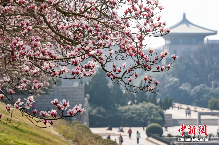 3月10日,市民在江苏南京雨花台风景区内拍摄玉兰花。近期,南京气温回暖,玉兰花开放迎春意。