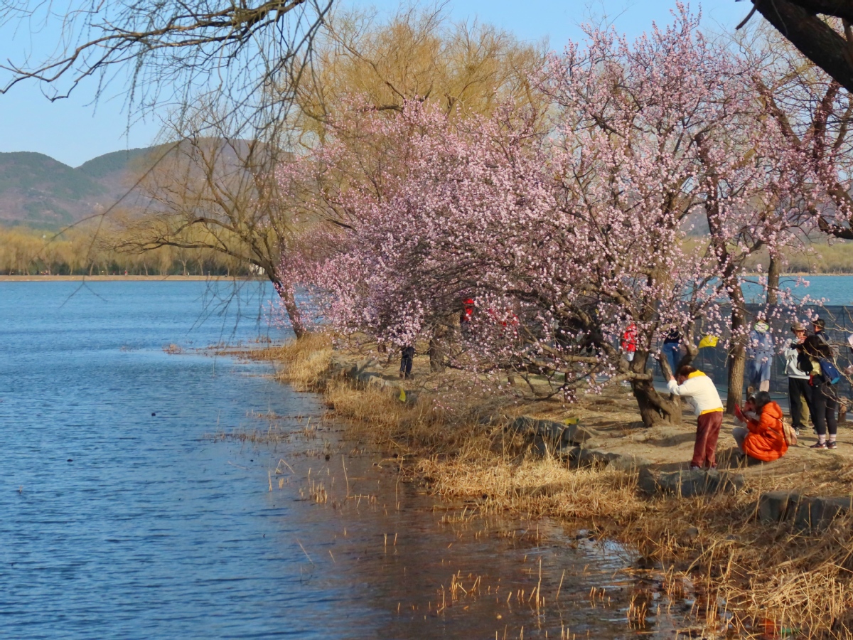 3月17日,游客在颐和园西堤赏花。中国日报记者 姜东 摄