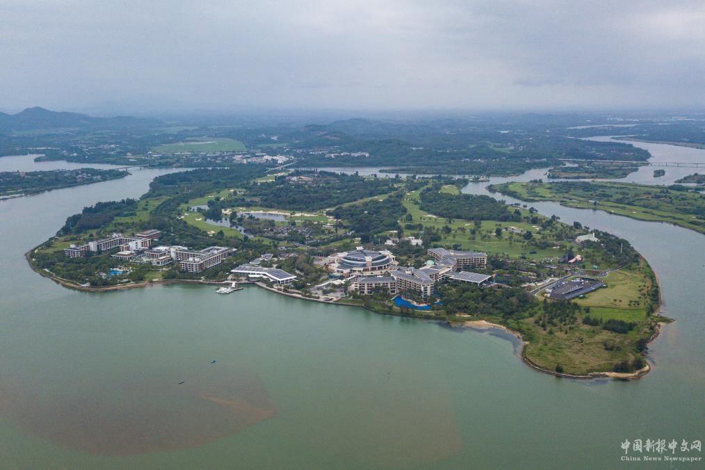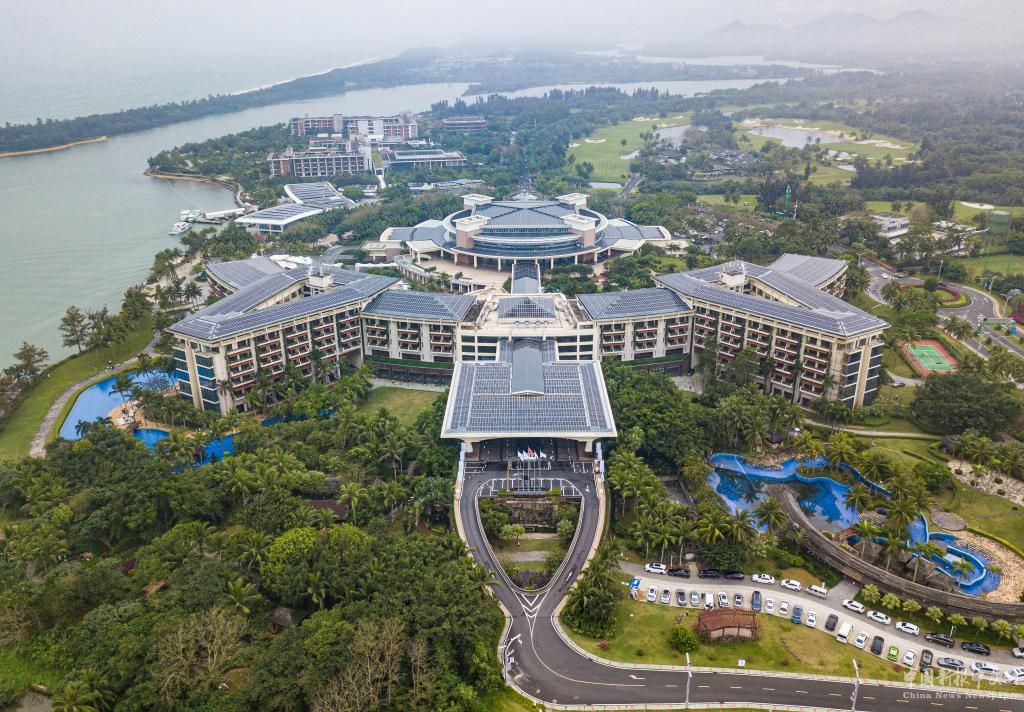 这是在海南省琼海市博鳌镇东屿岛拍摄的博鳌亚洲论坛国际会议中心和博鳌亚洲论坛大酒店(3月9日摄,无人机照片)。