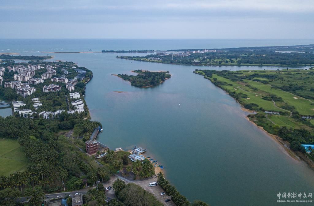 这是在海南环岛旅游公路沿线拍摄的万泉河入海口景色(3月13日摄,无人机照片)。