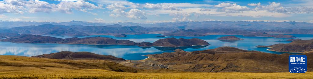 从喀庆拉山上俯瞰羊卓雍错(拼接照片,4月5日摄)。