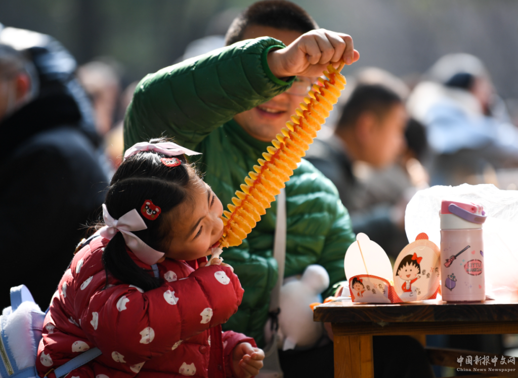 2023年1月23日,在四川省成都市街头,一对父女在享用美食。新华社记者 王曦 摄