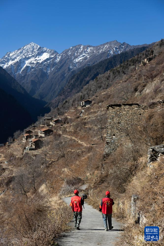 1月10日,在茂县赤不苏镇九龙村,森林防火巡护员杨贵勇(左)、王力保在巡护路上。