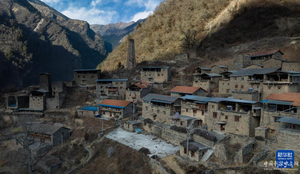 1月11日拍摄的茂县赤不苏镇赤不苏村大瓜子羌寨。
