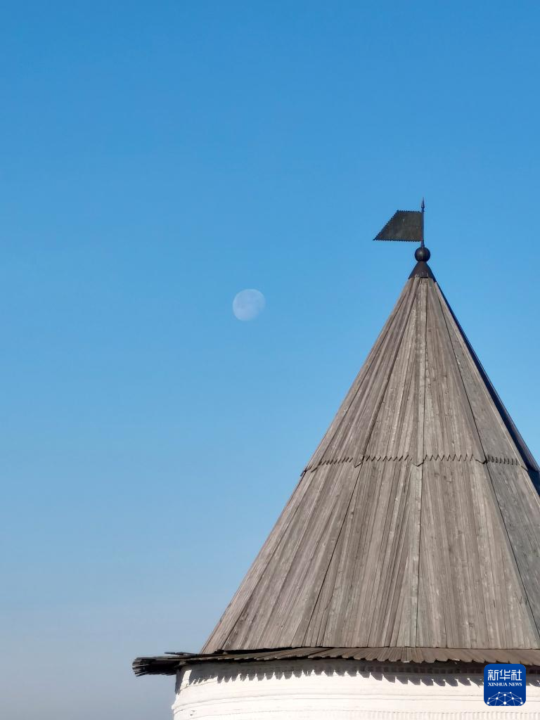 这是10月20日在俄罗斯喀山克里姆林宫拍摄的月亮。