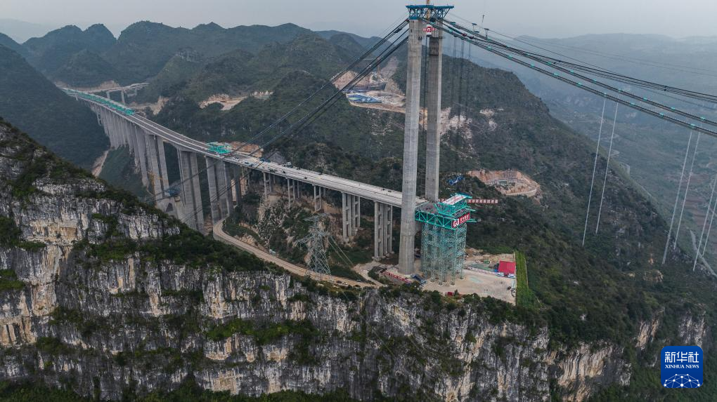 2022年开工建设的花江峡谷大桥,因跨越被誉为“地球裂缝”的花江大峡谷而得名,是贵州省六枝至安龙高速公路的控制性工程。全长2890米的大桥为钢桁梁悬索桥,桥面距水面垂直高度625米,建成后将成为新的世界第一高桥。