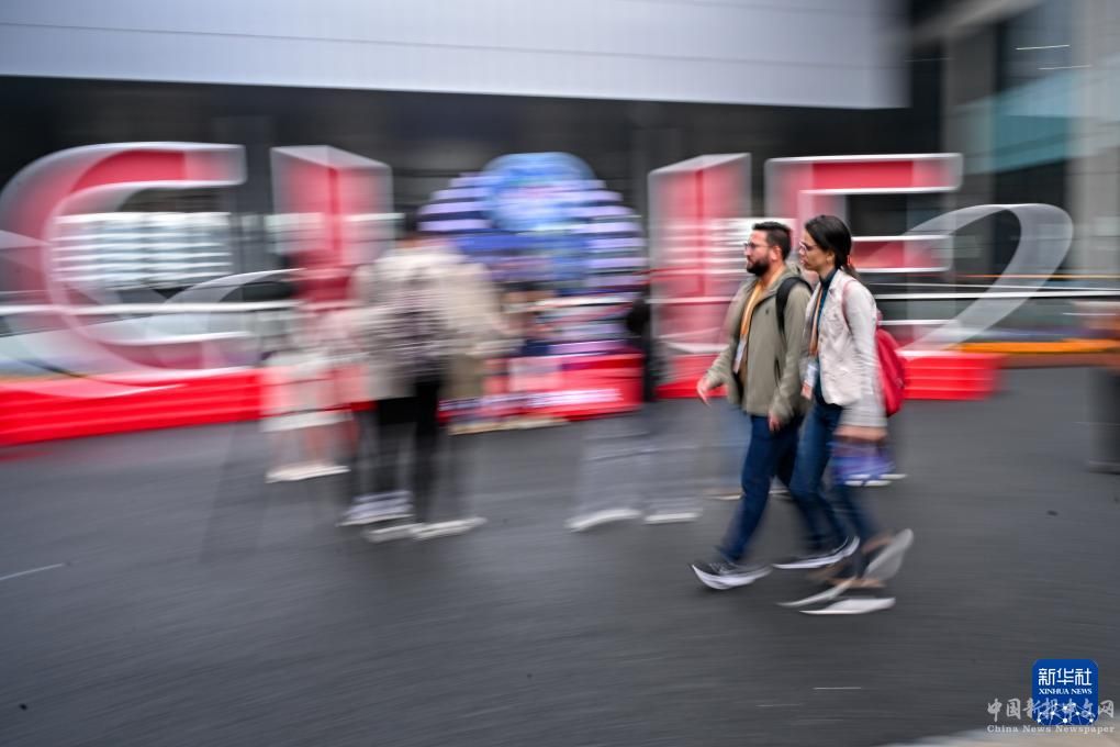 11月10日,参会者在国家会展中心(上海)展馆间的通道上行走。