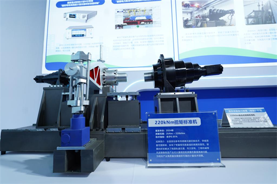 在大力值测量方面,湖南省计量检测研究院展出的220kNm复合式扭矩标准机解决了大型装备的“力量校准”难题。该院副院长陈红江告诉记者,这台“大国重器”首创参考传感器无缝切换技术,准确度达到0.05%,量程覆盖2kNm至220kNm,“以往像高铁驱动系统、风力发电机组主轴这样的大扭矩测量需送国外,现在在家门口就能完成高精度溯源,打破了国外垄断。”