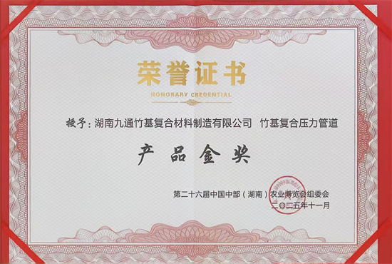 中国新报讯(记者 陈帆)记者从第二十六届中国中部(湖南)农业博览会上获悉,湖南九通竹基复合材料制造有限公司研发的“竹基复合压力管道”成功斩获产品金奖,这是该产品在绿色建材领域再获权威认可的重要里程碑。