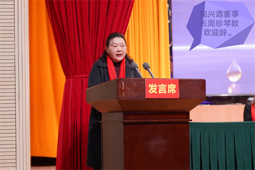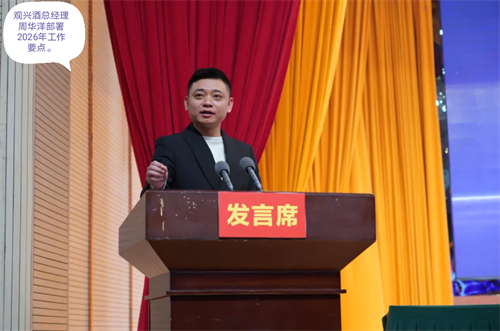 大会现场,观兴酒董事长周珍琴致欢迎辞,她深情回顾酒庄发展历程,清晰擘画未来发展蓝图,引发全场共鸣。集团总裁周元杰、总经理周华洋先后总结2025年发展成果,客观剖析当前面临的机遇与挑战,并详细部署2026年重点工作任务,为酒庄下一阶段发展指明方向。