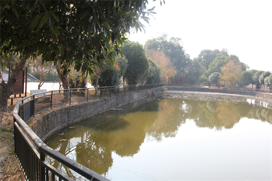 水是公园的灵魂。公园的中央是一弯清澈的池塘,碧绿的水面微波轻漾,倒映着岸边的垂柳和空中的白云,恰如一匣镜框,装入了一幅变化无穷的风景画。池塘的四周是水泥筑就,红褐色的护栏环绕在岸边,只留下两道下水的台阶。组长告诉我们,这池塘里的水不深,每当夏季来临的时候,孩子们都特别喜欢在家人的陪伴下到这里游泳戏水。那时的池塘是最美的,因为里面盛满了孩子们的欢笑,是最有灵魂的。