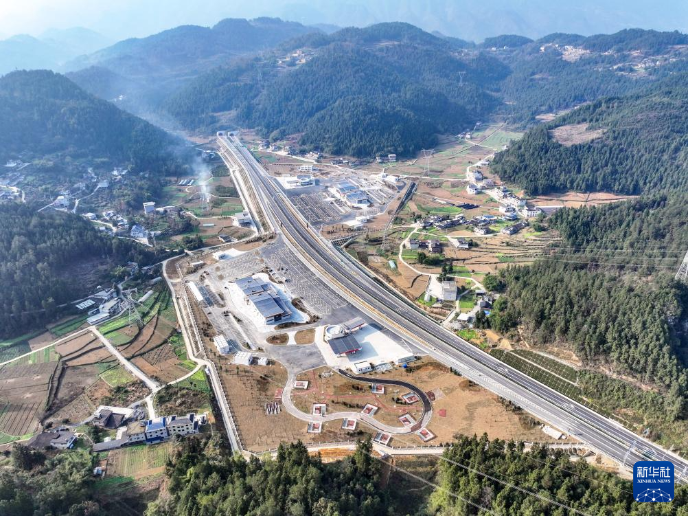 这是1月1日拍摄的渝湘复线高速公路乌江画廊服务区(无人机照片)。