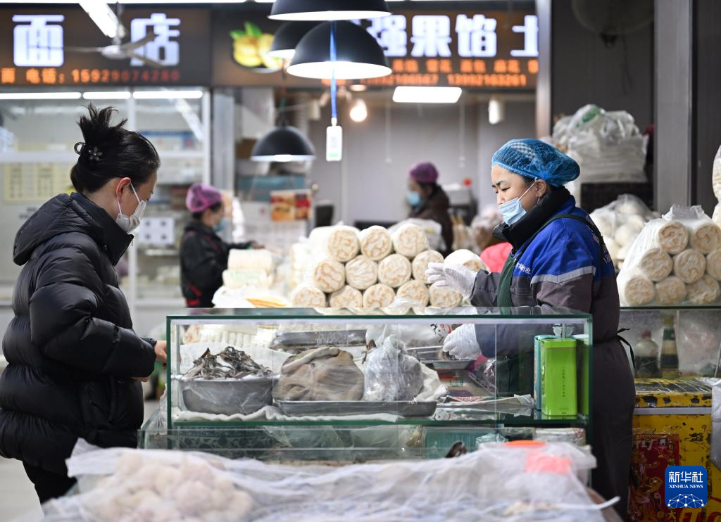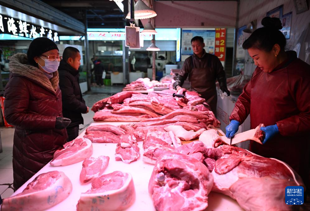 春节临近,陕西延安各大市场备足货量,保障节前鲜肉、蔬菜、饰品等供应,满足群众消费需求。