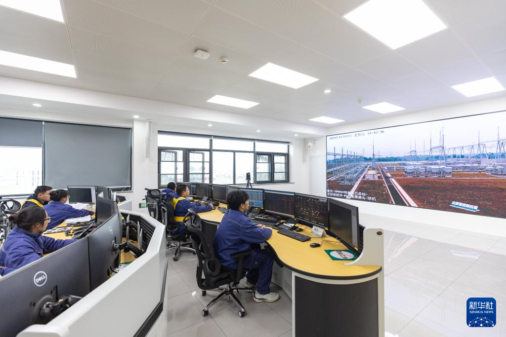 2024年12月27日,在川渝1000千伏特高压交流工程铜梁1000千伏变电站主控制室内,国网重庆超高压公司的运维人员通过智能巡视系统监控变电站设备的运行情况。新华社记者 黄伟 摄
