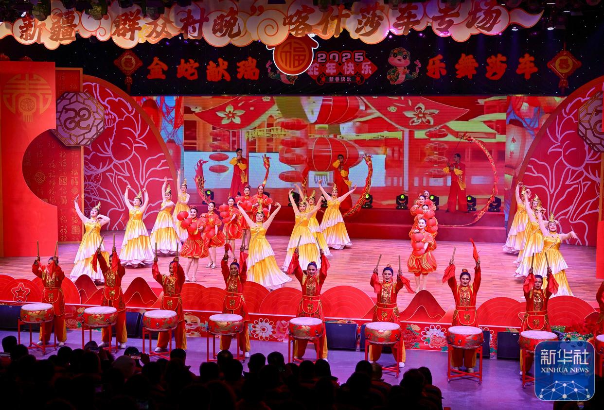 ↑演员在2025年“群众村晚”喀什莎车专场上表演(1月23日摄)。