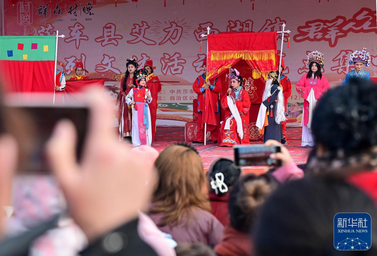 春节前夕,在新疆喀什地区莎车县,“群众村晚”系列文体活动火热开演,歌舞民俗表演、美食展、非遗展、体育赛事等各类文化活动精彩纷呈。“群众村晚”成为当地丰富百姓精神文化生活、凝聚乡村力量、传承中华优秀传统文化的重要平台。