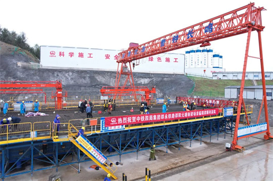 2024年10月22日,由中铁四局承建的邵永铁路1标邵阳元塘制梁场首榀箱梁开始浇筑。