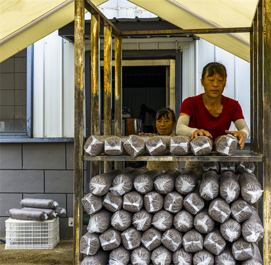 2025年9月11日,安徽省合肥市庐江县石头镇金乔种植家庭农场正在加紧生产食用菌营养袋。