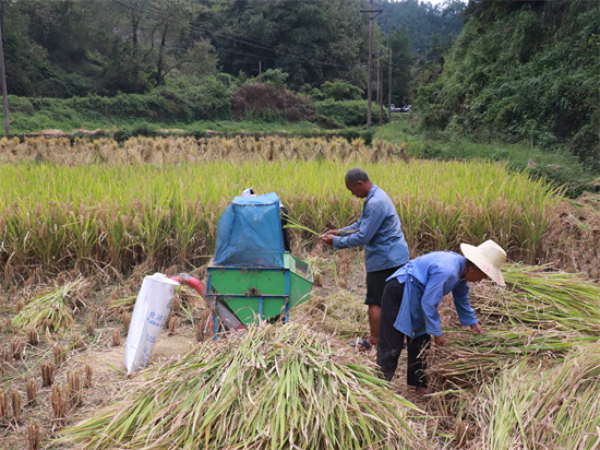 “正值收割关键时期,我局农技人员除组织实割测产工作外,另协调7台全自动收割机,在长滩、新江等村开展社会化服务作业,计划完成1500亩稻田收割任务,以解决农户劳动力短缺导致的收割难题,保障颗粒归仓。据不完全统计,目前全县投入作业的联合收割机达40余台,日均收割面积约1000亩,并计划在国庆节前完成全县水稻收割任务。”台江县农机站负责人石巴海说。