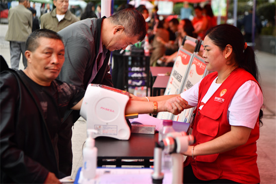 9月26日是,贵州省凯里市洗马河街道,一养老机构在免费给老人筛查硬动脉。(杨仁海 摄)