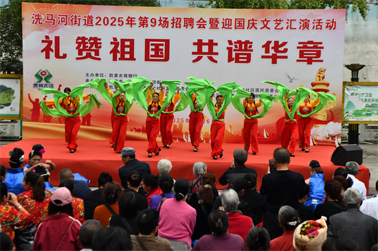 9月26日,凯里市洗马河街道2025年第9场招聘会暨“礼赞祖国 共谱华章”文艺汇演活动举行。此次活动旨在为新中国成立76周年华诞献礼,同时邀请企业开展金秋送岗位,让居民在家门口找到心仪的工作。