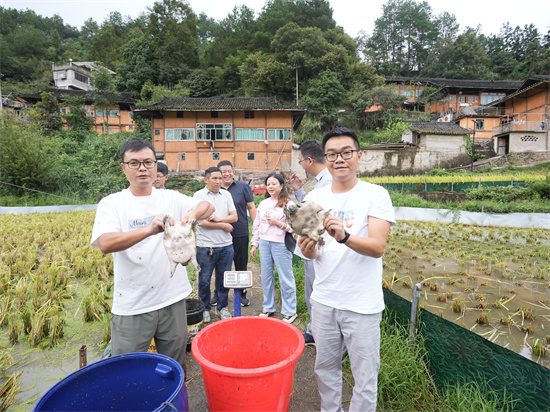 “从选种育苗到日常管护,省州专家团队全程指导,解决了我们不少技术难题。”台江县农业农村局水产站负责人张昌帮介绍,依托中国农科院、贵州省农科院的技术支撑,全县建立了“专家 + 技术员 + 农户”的指导体系,针对稻渔综合种养中的品种改良、病害防治等关键环节开展培训,今年已累计培训农户800余人次,发放技术手册1200余册。据统计,2025 年台江县稻鱼总产量预计达2200吨,平均亩产26.8公斤。在产业带动下,全县已有3200余户农户参与稻渔种养,通过“合作社 + 基地 + 农户”模式,农户不仅能获得稻谷、水产品的直接收益,还能通过务工、分红等方式增加收入。