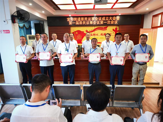 (图为宜阳街道居民议事会议成立大会颁证仪式)