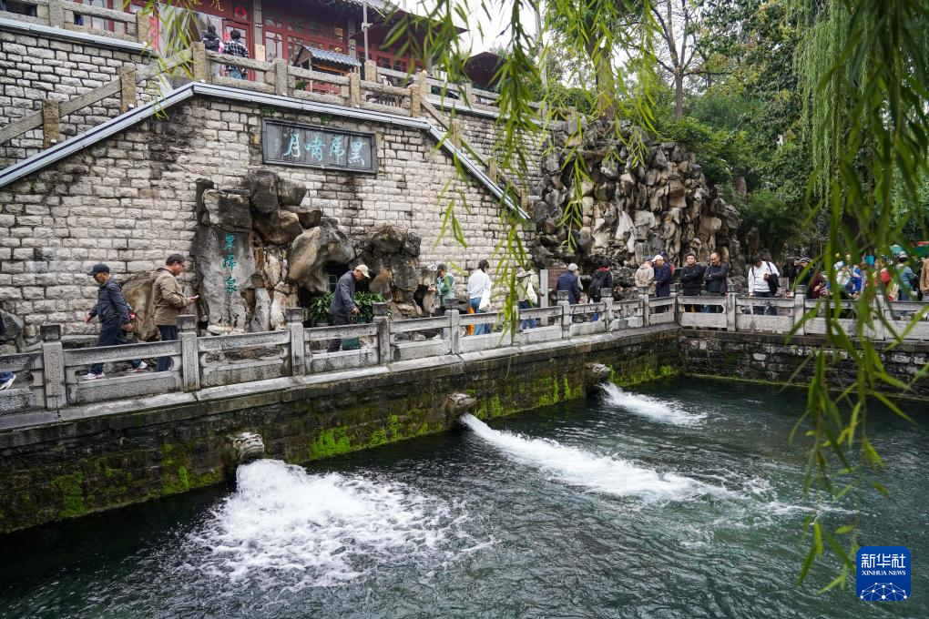 受近期降雨影响,山东省济南市群泉奔涌,吸引游客前来观赏。