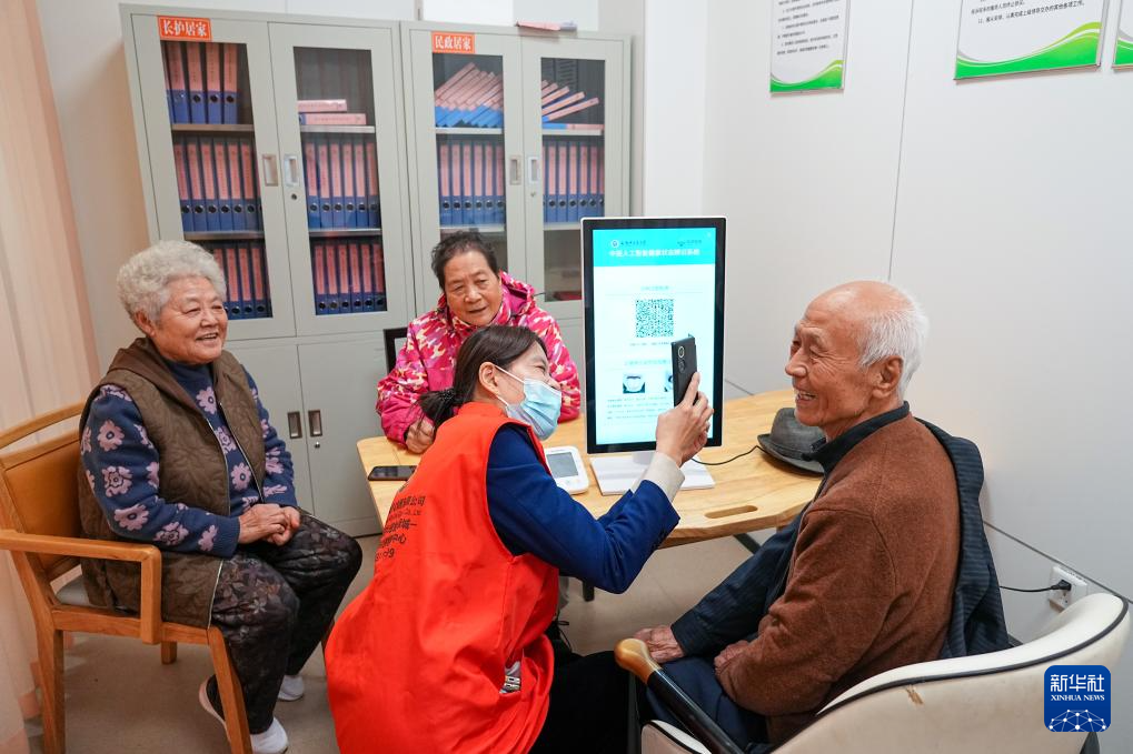 10月23日,老人们在淄博市张店区马尚街道金石社区日间护理中心测量健康数据。