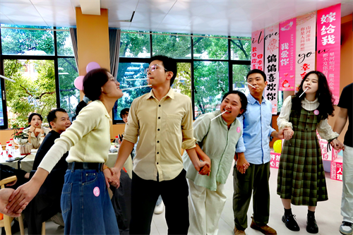 “盲人引导”游戏中,护士小张与搭档小王手牵着手,顺利绕过了障碍物。她羞涩地说:“这个游戏,让我感受到了彼此之间的信任和默契,这种感觉真的很奇妙。”程序员小赵在活动中遇到了一名心仪的女孩,便鼓起勇气递出了“心动便签”,女孩欣然接受后,他兴奋地表示:“活动为我们创造了很好的交友机会,让我能够勇敢地表达自己的心意,真的非常感谢主办方。”