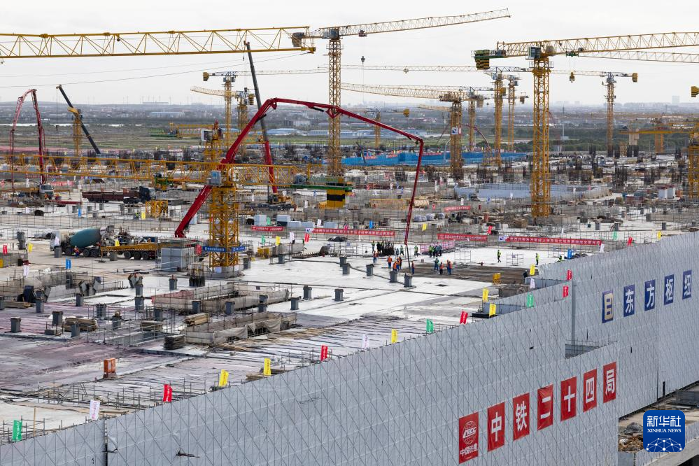 11月11日,上海第二大综合交通枢纽——东方枢纽上海东站主站房混凝土主体结构封顶,全面转入幕墙及屋面钢结构吊装、装饰装修等施工阶段。此项目建成后将形成集国家铁路、市域铁路、城市轨道交通及机场捷运等交通功能于一体的大型综合交通枢纽。