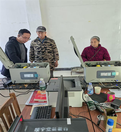 办理现场,镇村干部与银行工作人员分工协作、默契配合,设置信息核对、人像采集、卡片制作、激活讲解等专项工位,形成“一站式”服务链条。工作人员耐心指导村民填写申请表,快速完成信息核验与新卡制作,同时结合医保结算、养老金领取、公交出行等高频场景,手把手讲解第三代社保卡的非接触支付、密码修改、挂失补办等实用功能。针对行动不便的老人、残疾人等群体,组建专项服务小队开展上门办理,从信息采集到卡片激活全程协助,用贴心服务打通便民“最后一公里”。