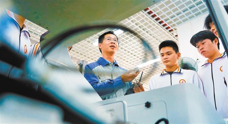 11月12日,位于定安县的海南省工业学校,老师在讲解无人车操作。该校通过校企合作、产教融合模式,为企业培养专业技术人才。