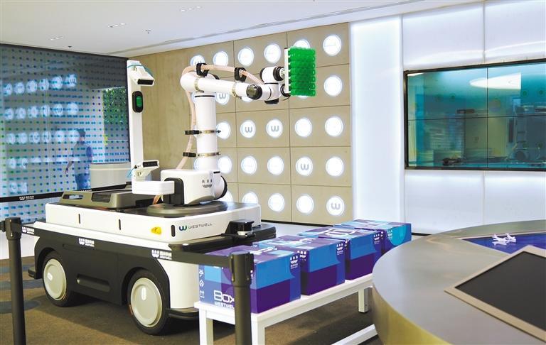 11月10日,西井科技研发的智能物流机器人Well-Bot在演示。该机器人可实现高效率分拣、精确搬运和智能化仓储管理。 康贝尔摄(中经视觉)