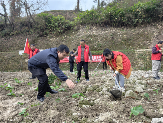 在方召村油菜种植地块,党旗迎风招展,县文旅局党支部与方召村党支部的党员干部迅速进入“农忙模式”。大家分工协作、干劲十足,翻耕土地、栽种菜苗、扶正压实,每一道工序都做得有条不紊,用实际行动赢得了群众的一致好评。