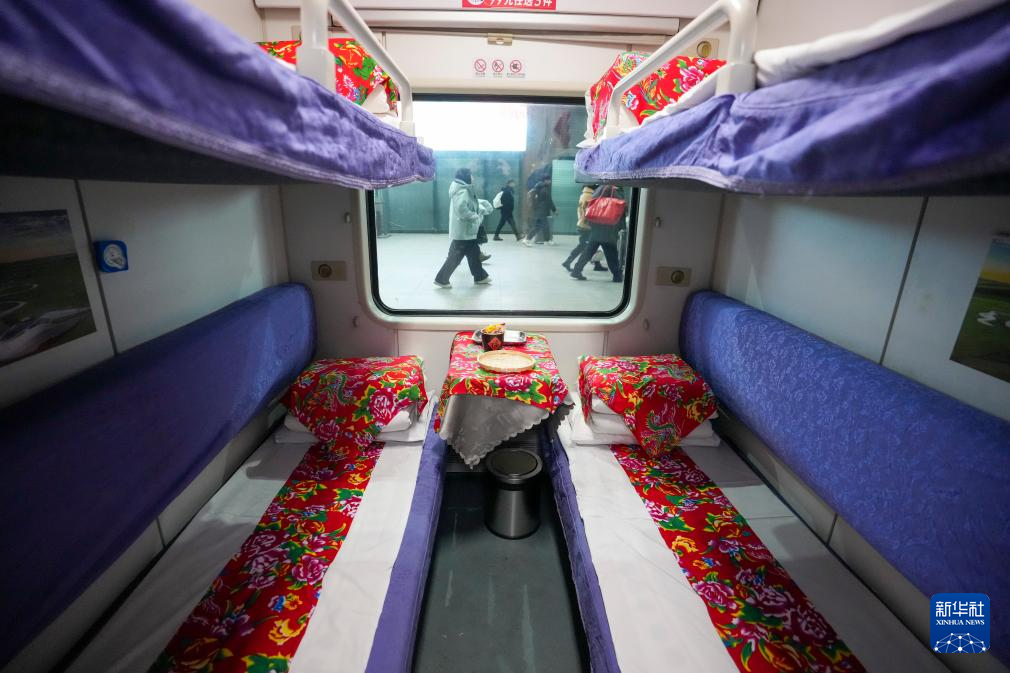 12月22日拍摄的K7041次列车的东北风情主题卧铺车厢。
