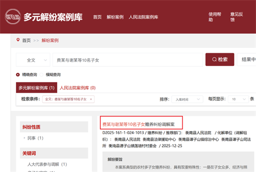 2.《费某与谢某等10名子女赡养纠纷调解案》