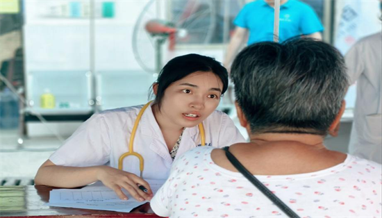 活动现场暖意融融,医疗团队的专业与热忱赢得村民们交口称赞。呼吸内科徐思娟医师俯身为老人听诊,细细询问:"最近有没有咳嗽咳痰?夜里睡觉会不会憋醒?"在详尽掌握病史后,结合症状给出个性化诊疗方案。针对老年群体高发的慢性病,医护人员重点开展高血压、糖尿病、冠心病筛查,手把手教村民监测指标,全力推动"早发现、早诊断、早治疗"健康理念落地。胃肠外科贺丽娜医师为长期受胃痛困扰的村民逐一触诊,不仅开具诊疗建议,更耐心讲解饮食调理要点,提醒"少沾辛辣、按时进餐"。指导老师韩焱严把药品发放关,核对处方、确认剂量,确保每一份药品都精准安全。学生志愿者们则穿梭于诊区之间,引导排队、记录数据、协助登记,成为义诊现场的"青春力量",用行动诠释责任担当。