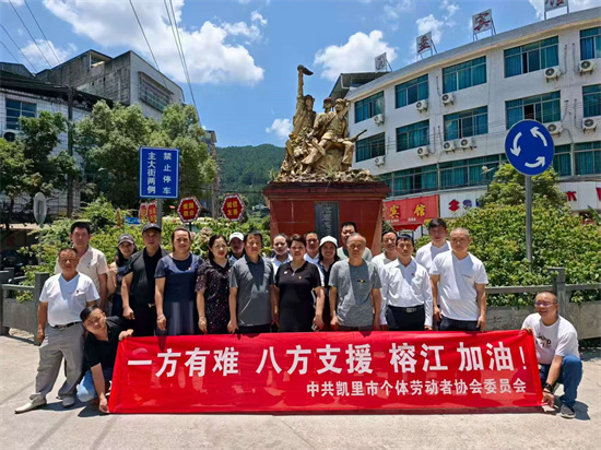 黔东南州兴众诚商贸有限公司(黔东南州海信电器运营商)龙庆演捐赠价值3000元的150件瓶装水和价值1000元的100斤面条,物资价值总计4000元。该公司还派4名售后服务专人驻守榕江,为当地群众提供10天免费电器检修服务。