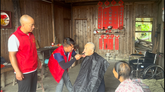 考虑到村内部分行动不便的老人出门困难,下午,志愿者们兵分几路,开展上门义剪服务。他们带着工具来到老人家中,一边为老人理发,一边询问老人的生活状况和身体情况,用贴心的服务让老人们感受到了来自党组织和社会的关怀。