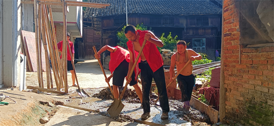 施工现场,近20名志愿者分工协作,拖车转运、挥铲清土、拆违施工……各项工作紧张有序,一派热火朝天的劳动景象。此次道路改造升级聚焦三大任务:清理下塘家操坪堆积十余年的建筑材料,既疏通道路又消除安全隐患;拆除村民向祖炳房屋部分偏房,将原本1.8米宽的路面扩至2.5米;填充整修沿路下水道,进一步拓宽通行空间。