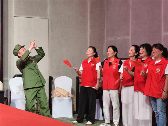 湖南省老干部大学金秋志愿服务队的志愿者和老战士一起表演《战士之歌》