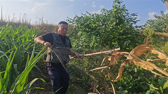 湘赣边候鸟守护者在株洲市茶陵县某乡村拆除鸟网