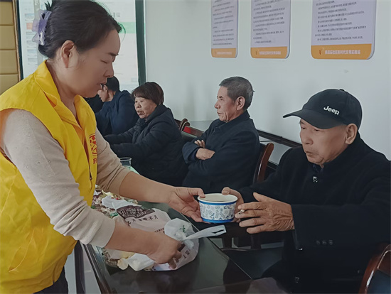 义工们现场为老人送上长沙邦众生态农业有限公司赞助的爱心大米和长沙县慢天使企业服务有限公司捐赠的保健腰带与果园镇邮储银行提供的洗洁精等生活物资。接下来,老人们一边喝着营养美味的乌鸡汤一边观看由果园镇中心幼儿园的小朋友们带来《奔腾的骏马》和《中华孝道》等精彩的文艺节目,孩子们充满童趣的表演赢得老人们阵阵掌声。