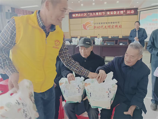 中国新报讯(特约记者 刘露)金秋送爽,重阳将至。为弘扬中华民族尊老、敬老、爱老、助老的传统美德,丰富农村老年人的精神文化生活。10月23日,长沙县爱的摆渡人义工发展中心联合长沙县果园镇杨泗庙社区携手长沙邦众生态农业发展有限公司、养天和大药房鑫芝店、长沙县慢天使企业服务有限公司、果园镇邮储银行和果园镇中心幼儿园在果园镇杨泗庙社区党群服务中心举办了文明实践我行动“厚德星沙 益路同行”长沙县果园镇“我在新时代文明实践站过重阳”主题活动,吸引了数十位社区长者踊跃参与,现场欢声笑语,其乐融融。