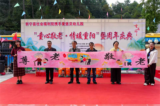 中国新报讯(特约记者 周洁)金秋送爽,情暖重阳。10月29日重阳节上午9时30分,新宁县社会福利院暖意融融、欢声阵阵,由新宁县福康养老服务有限公司、新宁县爱堡贝幼儿园有限公司联合主办,新宁县工商联、新宁县民政局指导,新宁县崀韵文化传媒演艺有限公司特邀赞助的“童心敬老·情暖重阳”爱老敬老暨周年庆典活动在此温情启幕。县政协副主席、县工商联主任林小石,县民政局副局长唐河生出席活动,爱堡贝幼儿园300余名师生及家长、福利院100余位老人与社会各界人士齐聚一堂,共庆重阳佳节。
