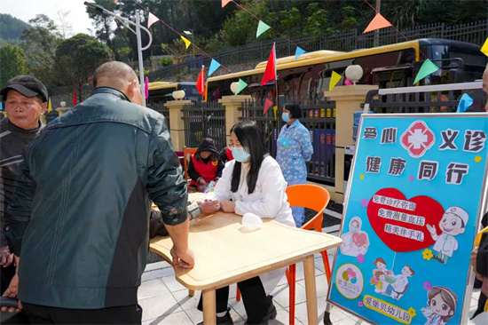 活动尾声,场地右侧的“健康关怀角”依旧热闹——拥有医护背景的家长志愿者为老人们测量血压,孩子们则主动为爷爷奶奶捶背、捏肩,用行动诠释“孝”的含义。随后,全体人员起立,共同合唱《让爱住我家》,熟悉的旋律、真挚的歌声回荡在福利院上空,大家挥舞气球、手拉手,将现场变成爱的大家庭。