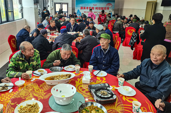 2025年10月29日,重阳节,在安徽省合肥市庐江县柯坦镇第一敬老院,合肥市灏美大酒店工作人员自带食材和餐具,制作出一桌桌精美的敬老“孝亲饭”,让老人们品尝到城市大饭店才有的精致菜肴。护理方庐江县盛铭养老护理中心是一家专业护理团队,一直致力于将柯坦镇第一敬老院打造成一个老有所养、老有所乐、老有所医的颐养环境,当天他们邀请了庐城一家黄梅戏民间艺术团,现场演出老人们耳熟能详的传统戏曲。敬老院百余位老人一边吃着可口的佳肴,一边欣赏黄梅戏、庐剧,过了一个特殊的重阳节。